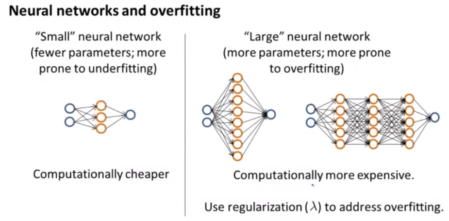 인공 신경망에 대해서도 고려해봅니다. 적은 파라미터를 가진 신경망은 과소적합에 적합합니다. 많은 파라미터를 가진 신경망은 과적합에 적합합니다.