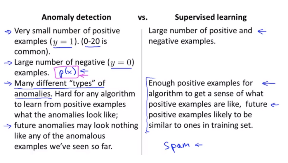 이상 탐지 지도 학습 데이터 셋의 이상 예제 수 이상 예제에 비해 정상 예제가 훨씬 더 많다 이상/정상 예제 모두 많다 이상 현상 유형 많은 종류의 "비정상" 유형이 있고 새로운 유형이 생길 수 있다 새로운 유형은 탐지하기 어렵다 Choosing What Features to Use
